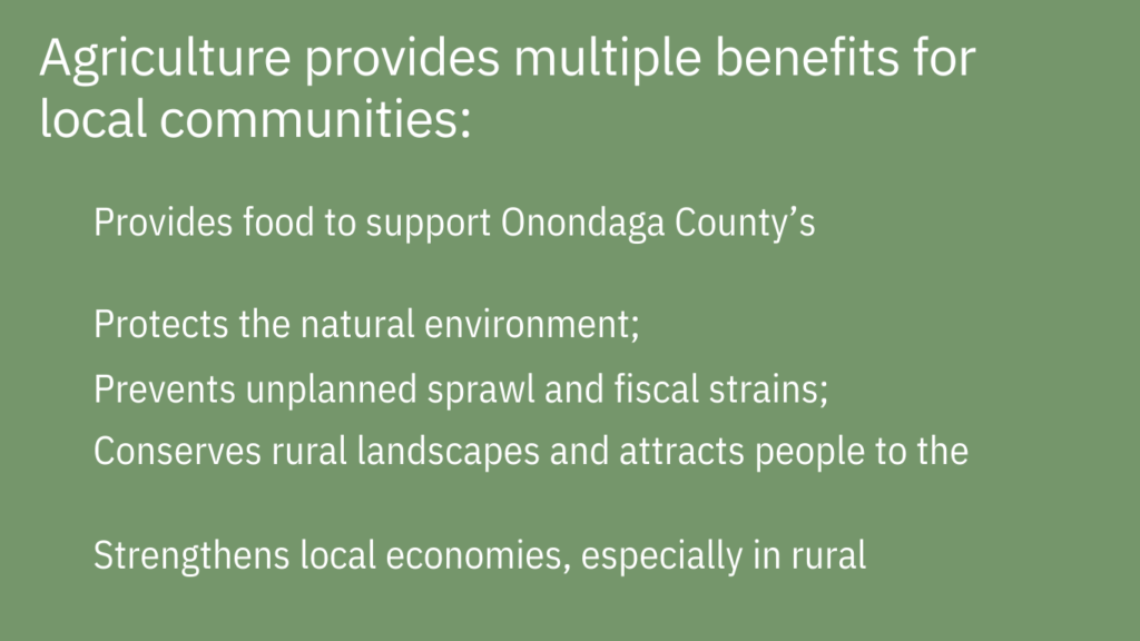 Onondaga County will ensure that Agriculture remains a viable and integral part of the economy and a defining characteristic of the landscape.