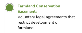 Continue to support agricultural conservation easement programs by finding ways to increase capacity at local land trusts, and implementing the Agricultural and Farmland Protection Plan.