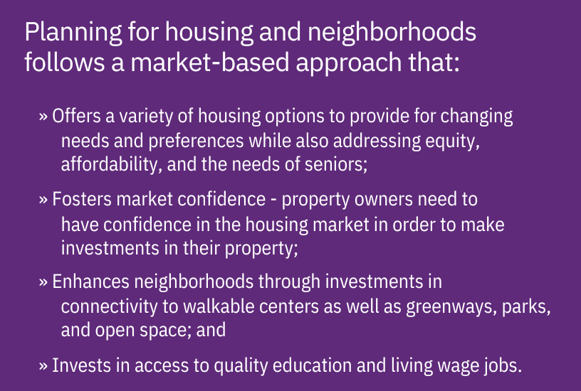 Housing and Neighborhoods as a planning theme addresses the needs and desires people have for the structures and places where they live.